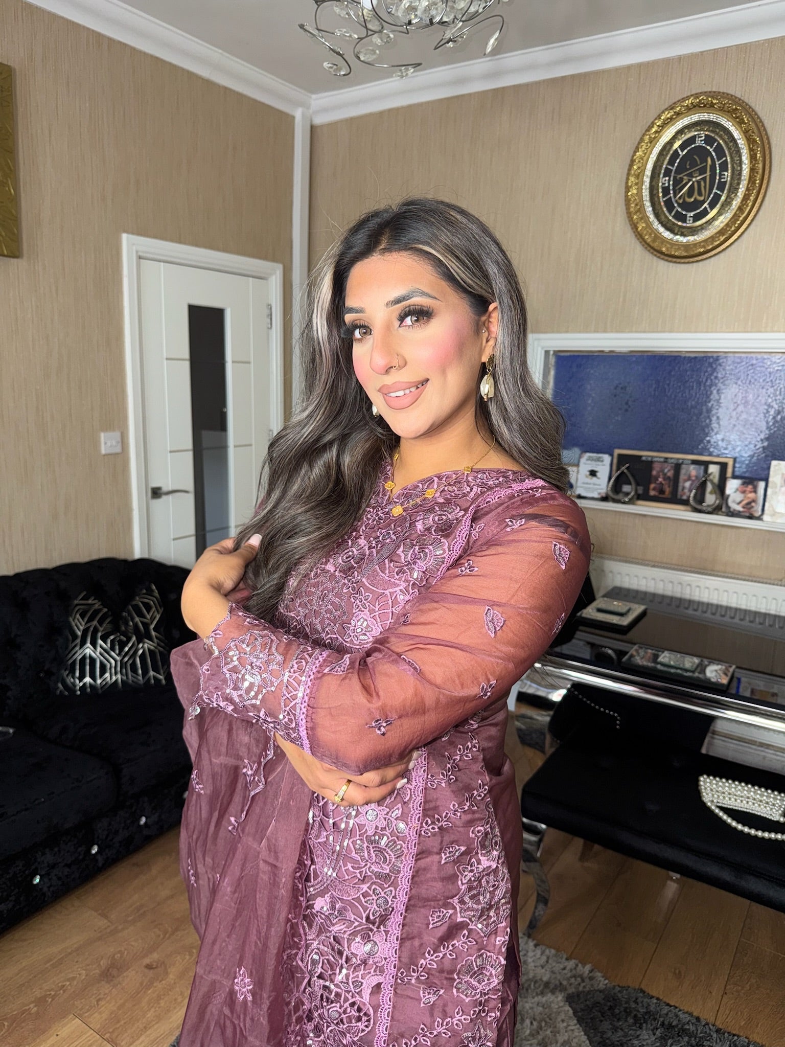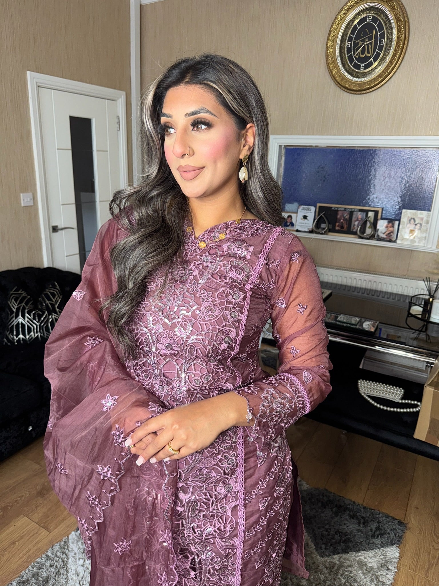 Mauve Embroidered Shalwar Kameez with Net duppatta fully stitched 3 piece suit with Net Dupatta MOB-C1924B