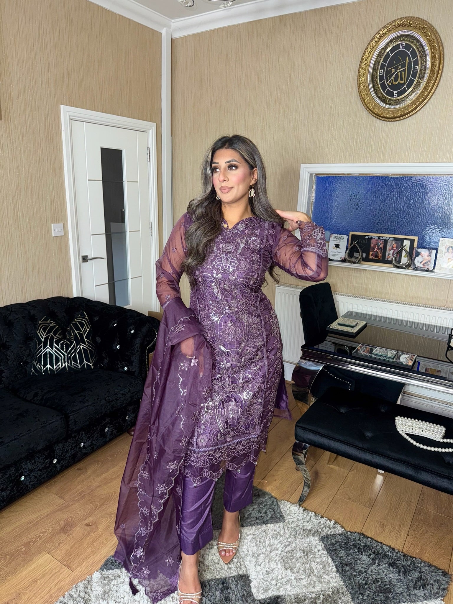 Purple Embroidered Shalwar Kameez with Net duppatta fully stitched 3 piece suit with Net Dupatta MOB-C1924
