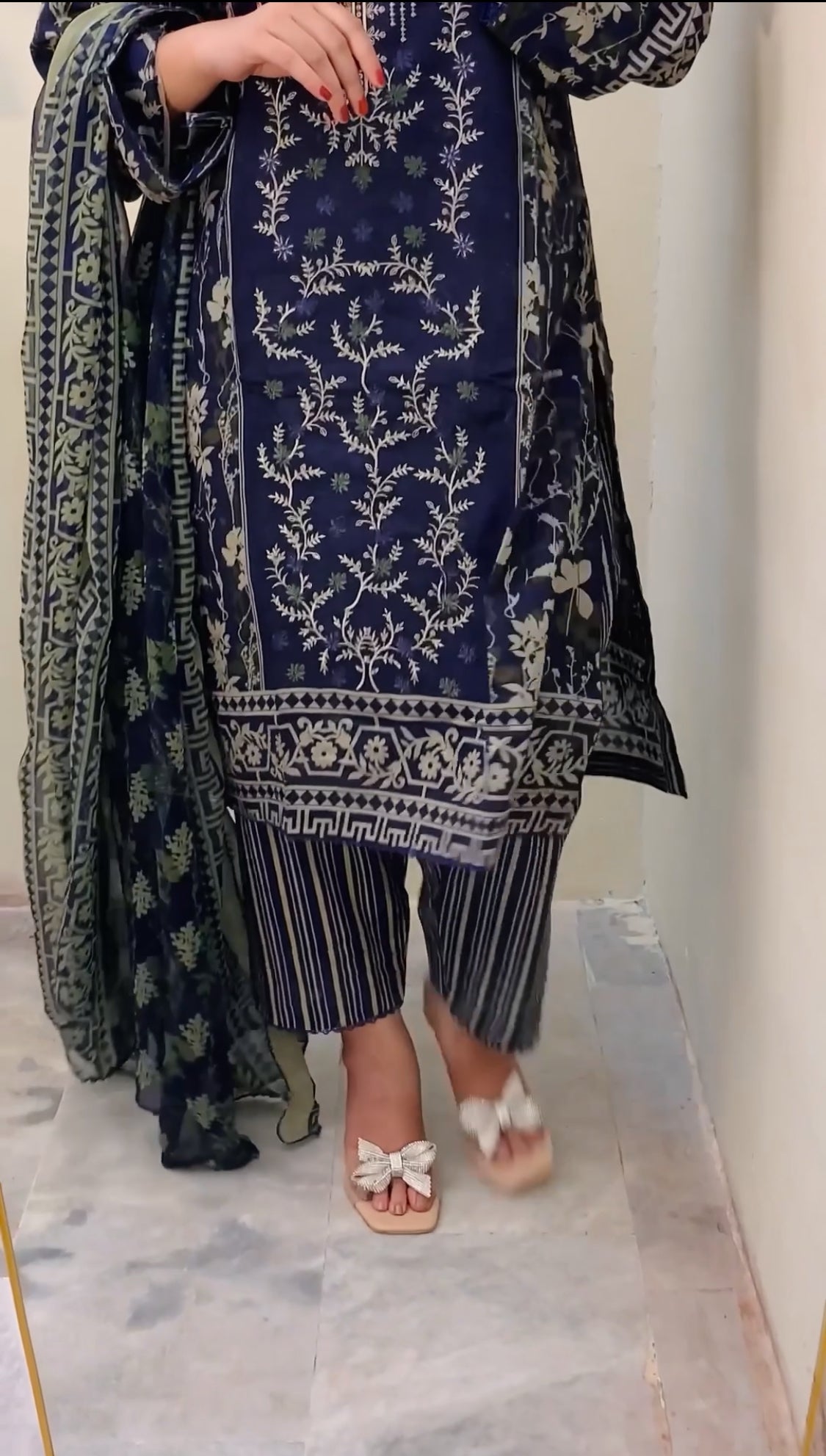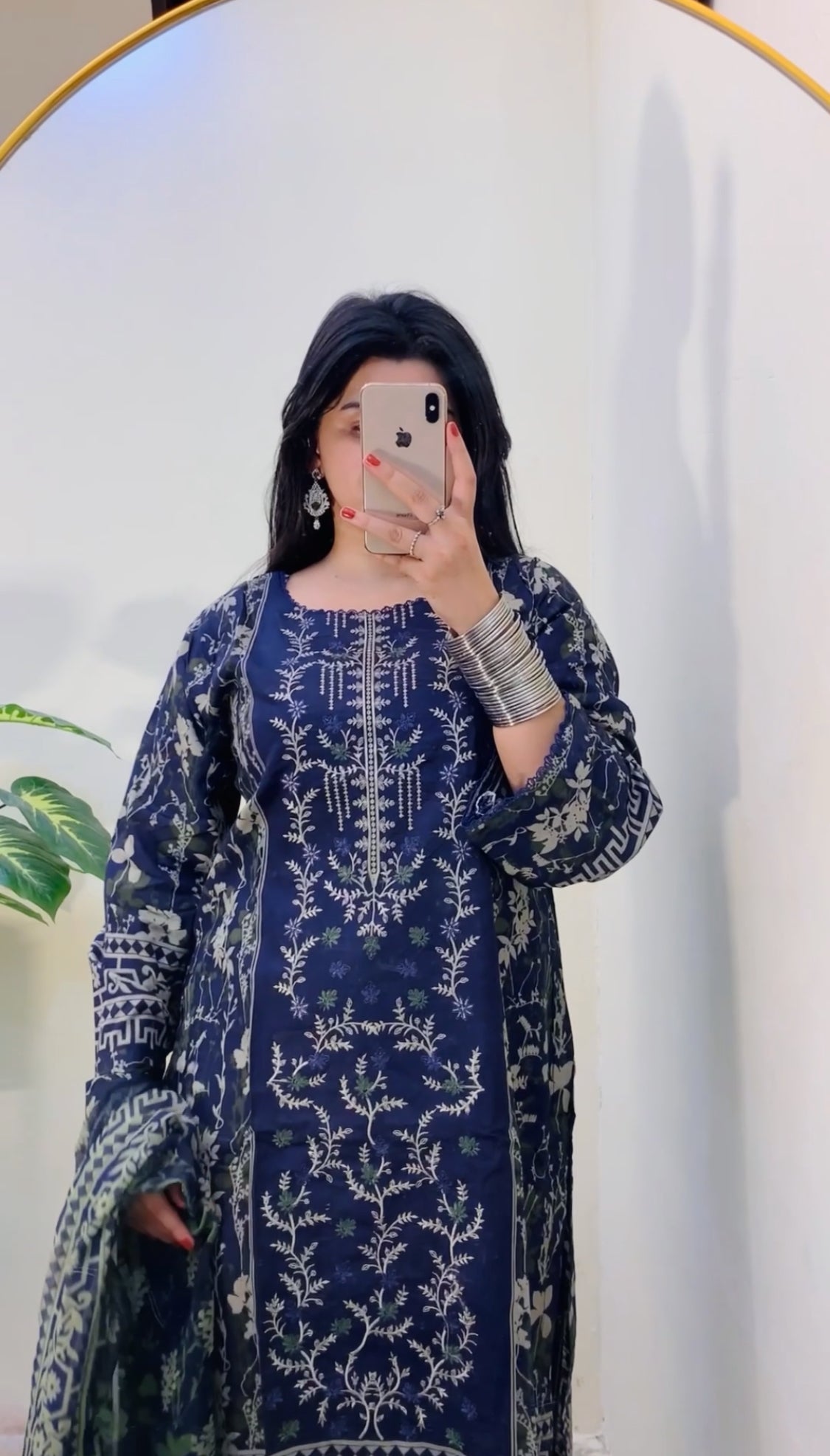 3PC NAVY lawn Shalwar Kameez with chiffon dupatta 3piece ready to wear suit MOB-L001